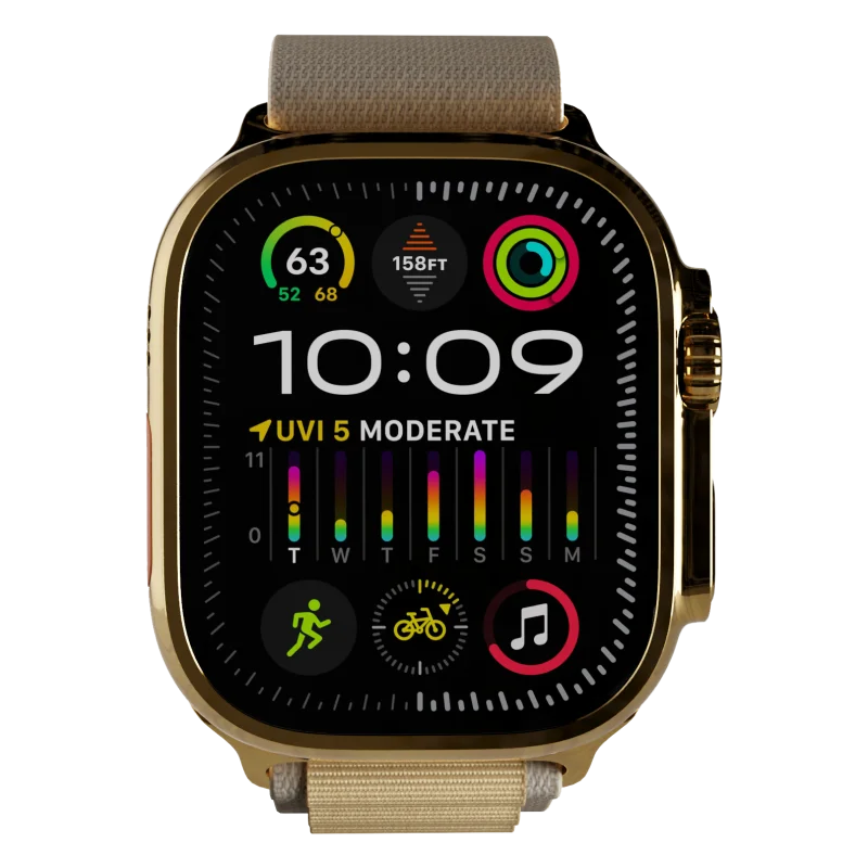 Designed for both performance and style, this 24k Gold smartwatch is ideal for adventurers who appreciate the finer things in life. Make a unique statement with this exclusive gold Apple Watch Ultra, crafted for the bold and style-conscious.